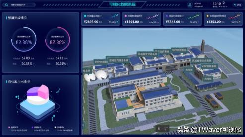 为电厂园区以及内部设施构建3D仿真模型,在此基础上提供多源数据接口,接入各系统数据,并通过可视化编排工具,快速实现了生产数据、机组实时运行数据、能耗、排放、环保等各项指标实时汇聚展示,并形成了清晰、美观的生产主题、经营主题、安全主题、环保主题等数十个主题大屏。 通过可视化大屏,将电厂的生产数据、机组实时运行数据、能耗、排放、环保等各项指标实时汇聚展示,辅助电厂运营决策和日常监控管理。 对于组态软件的介绍就到这里,感兴趣的小伙伴可关注“TWaver可视化”,我们将持续呈现更多精彩内容。