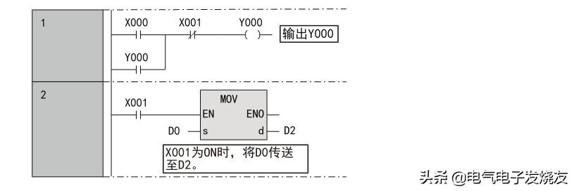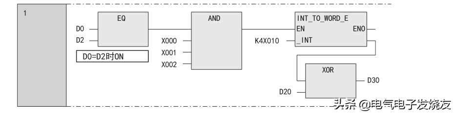 2. 功能模块表语言 FBD语言是一种从视觉上易理解的图形语言。 沿着数据以及信号的走向连接进行特定处理的部品(功能、 功能模块)、 变量部品、 常数部品, 由此可以方便地创建程序, 提高程序的生产性