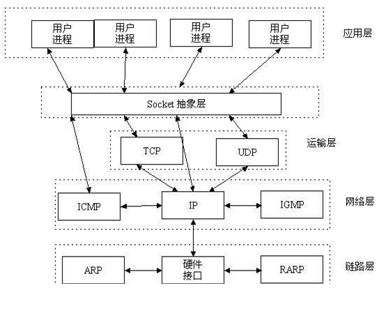 Socket是网络通讯经常采用的一种方式,它不是一个具体的物件也不是想http类的通讯协议。你可以把它看成是一组基于TCP和UDP通信协议的接口,Socket其实就是一个门面模式,它把复杂的TCP/IP协议族隐藏在Socket接口后面,对用户来说,一组简单的接口就是全部,让Socket去组织数据,以符合指定的协议。 Socket基本概念在了解Socket之前你需要对计算机通讯的分层有个大概的了解,具体讲解我在这里就不讲了,放一张很好的图分享给大家: