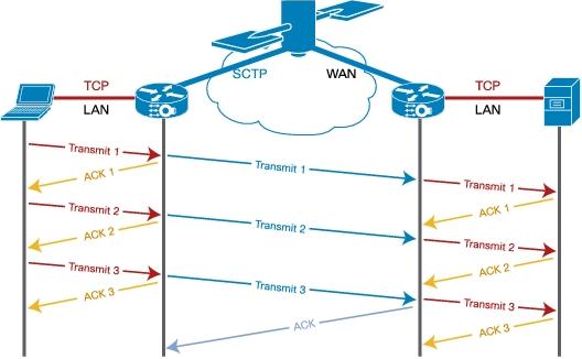 主流的TCP加速方式主要有 :基于流量的加速传递和数据包处理性能优化。 基于流量的方式主要通过修改拥塞 控制算法来达到快速传递数据包的目的。 数据包处理性能优化包括内核优化、TCP offload和基于用户态TCP协议的方式。这些方式可用于优化数据包处理,从而提升系统的吞吐量。 2、基于流量的TCP加速方式 2.1 TCP双边加速 TCP双边加速需要在TCP连接的两端部署 硬件设备或安装 软件。 双边加速的优点是可以利用压缩等技术进一步提升TCP传输效率,缺点是部署麻烦。 双边加速一般应用于公司不同分支之间的远距离访问。 下图是双边加速的一个例子。TCP加速设备之间采用SCTP的协议进行交互,而原本TCP对端跟TCP加速设备之间则采用常规的TCP协议进行交互。这种透明代理的方式方便了TCP加速设备之间采用特殊的方式来加速。
