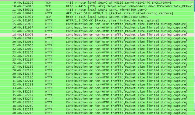 2.2 单边加速 TCP单边加速只需要在在TCP的一端部署软件或设备,达到提升TCP快速传输数据的目的。 绝大部分TCP单边加速都是通过修改TCP的拥塞控制算法来实现。 下图显示了某商用化产品的单边加速情况,数据包的发送很暴力,并没有慢 启动过程。这种无视网络状况发送数据包的方式,大部分场景下确实能够提升性能,但这样的性能提升方式其实是抢占了互联网带宽资源,就像高速公路走应急车道一样。