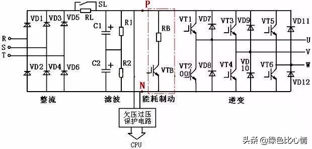 变频器配制动 电阻,主要是想通过制动电阻来消耗掉 直流母线 电容上的一部分能量,避免电容的 电压过高。理论上如果电容存储的能量多,可以用来释放出来驱动 电机,避免能量浪费,但是电容的容量有限,而电容的耐压也是有限的,当母线电容的电压高到一定程度,就可能会损坏电容了,有些还可能损坏IGBT,所以需要及时通过制动电阻来释放电,这种释放,是白白浪费掉的,是一种没有办法的做法。 母线电容是个缓冲区,容纳能量有限 三相 交流电全部整流后,接入电容,满载运行时候,母线正常的电压大约是1.35倍,380*1.35=513伏,这个电压当然会实时波动的,但是最低不能低于480伏,否则会欠压报警 保护。母线电容一般是两组450V电解电容串联而成,理论耐压是900V,如果母线电压超过这个值,电容会直接爆掉了,所以母线电压是无论如何都不能达到900伏这么 高压的。 实际上,三相380伏输入的IGBT的耐压值是1200伏,往往要求工作在800伏以内,考虑到电压如果升高,都会有个惯性问题,也就是你马上让制动电阻工作了,母线电压也不会很快降低下来,所以很多变频器,都是 设计在700伏左右就通过制动单元让制动电阻开始工作,让母线电压降低下来,避免往上继续冲。 所以制动电阻设计,核心就是考虑到电容和IGBT模块的耐压问题,避免这两大重要的器件被母线的高电压冲坏掉了,这两类元件如果坏掉了,变频器也就无法正常工作了。 快速停车要制动电阻,瞬间加速也需要 变频器母线电压之所以会变高,很多时候是变频器让电机工作在电子制动状态,让IGBT通过一定的导通顺序,利用电机是大 电感电流不能突变,瞬间产生高压来往母线电容充电,这时候让电机快点降低速度下来。如果这时候没有制动电阻及时消耗掉母线的能量,母线电压将会持续变高而威胁变频器的安全了。