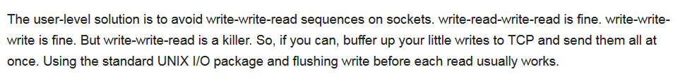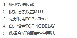 从上面我们可以看出减少数据传递对于性能是非常重要的。 如果是内网应用,通过合理设置MTU来提升性能是不能忽视的一种手段;对于移动应用,一般可以设置MTU为1492;对于外网应用,则设置通用的1500。 带宽消耗高的应用,可以考虑利用TCP offload来提升性能。 目前服务器程序一般建议设置NODELAY为true,如果需要对小数据包合并,则可以考虑在应用层做数据合并(参考下图Wikipedia中内容)。