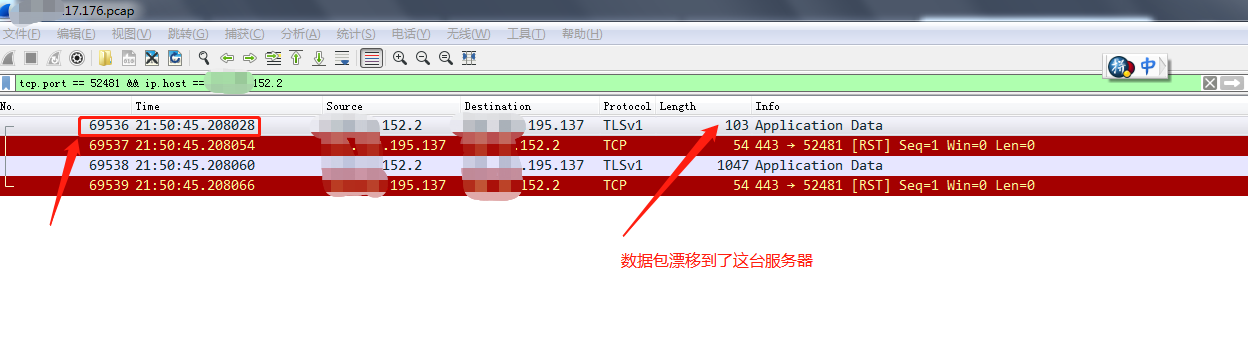 后来这个连接的数据包跑到了176机器(参考下图)。