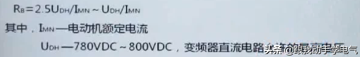 (3)整流模块:将三相交流电整流成直流电,输入电压380VAC,输出直流514~537VDC。 (4)滤波器:滤波电容能承受电压400多V,但直流后的电压是500多V,所以一般用两组电解电容,R2和R3为均压电阻,主要考虑电解电容的的离散性很大,每个电容之间的电容量差值很大,一般差20%都是合格的,这样在充电时每个电容的电压不一致,所以加均压电阻,是电容两端电压保持一致。 (5)充电电阻:R1,通过充电电阻给滤波电容充电,当电压达到500多伏后将充电电阻通过直流接触器短掉,主要考虑在开始合闸时电容相当于短路,会把整流电路烧掉。 (6)制动单元与制动电阻:考虑到电机处于发电状态,通过二极管整流成直流,电压持续升高,变频器容易过压保护,所以,加制动单元和制动电阻,当检测到电压700V左右时,使IGBT接通,把电机发电的能量消耗在制动电阻上.制动电阻选择换算公式如下所示: