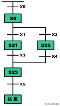 讲了顺序功能图,还要给大家介绍一下顺序功能图的基本结构,包括:单流程、选择性分支、并行性分支,当然还有循环的结构。下面再分别介绍一下这几种基本结构。