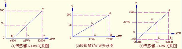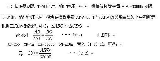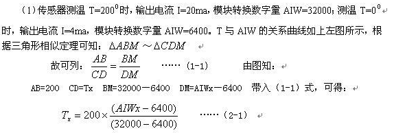 上面推导出的(2-1)、(2-2)、(2-3)三式就是对应(1)、(2)、(3)三种温度传感变送器经过模块转换成数字量后再换算为被测量的转换公式。编程者依据正确的转换公式进行编程,就会获得满意的效果。