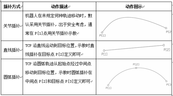 再现速度——机器人再现时,程序点之间的移动速度。空走点/作业点——机器人再现时,决定从当前程序点到下 一个 程序点是否实施作业。  机器人工作时的几种插补方式