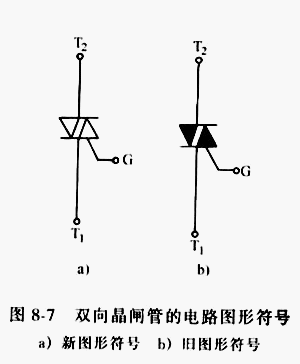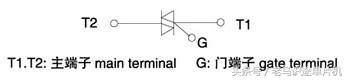 单向晶闸管阳极和阴极之间加正向电压,同时控制极与阴极间家所需的正向触发电压时,晶闸管被触发导通。 2、双向晶闸管 双向晶闸管又称双向可控硅,属于N-P-N-P-N的5层半导体器件,有第一电极T1,第二电极T2,控制极G共3个电极。在结构上相当于两个单向晶闸管反极性并联。 其电路符号和实物见下图 双向晶闸管第一电极与第二电极之间,无论所加电压极性是正向还是反向,只要控制极和第一电极间加有正负极性不同的触发电压,就可触发导通,呈低阻状态。双向晶闸管一旦导通,即使失去触发电压,也能继续保持导通状态,只有当第一电极、第二电极电流减小至维持电流,或第一第二电极间电压极性改变且没有触发电压时,才可截止,此时只有重新加触发电压方可导通。因此,双向晶闸管一般用于调节电压、电流或用作交流无触点开关。
