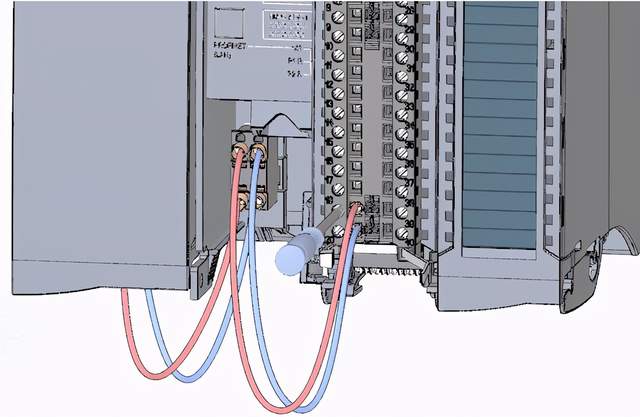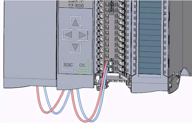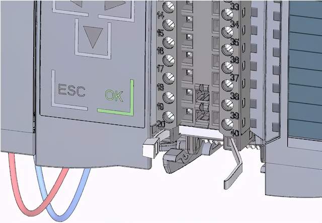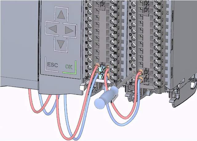 2.通过数字量输入模块上的端子40 (M) 和 39 (L+),从数字量输入模块为的端子 20 (M)和 19 (L+) 提供 DC 24 V 供电电压