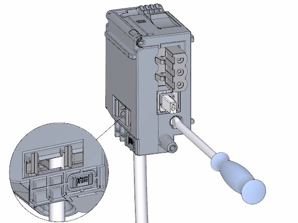 对电源连接插头接线步骤: 1.使用适用工具拔出连接器外盖。