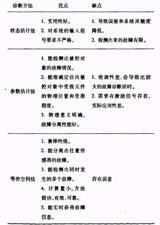 表1模型法中一些故障诊断方法的优点和缺点的比较
