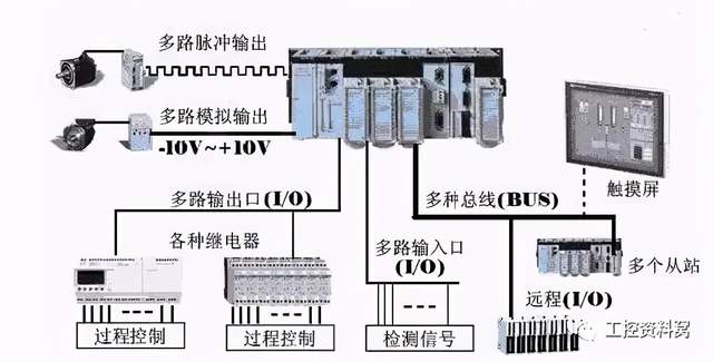 以上几点应用是着重从质上讲的。从量上讲,PLC有大、有小。所以它的控制范围也可大、可小。小的只控制一个设备,甚至一个部件,一个站点;大的可控制多台设备,一条生产线,以至于整个工厂。可以说工业控制的大小场合,都离不开PLC。