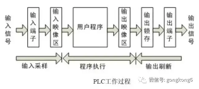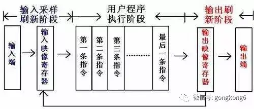 5、刷新输出阶段 执行完用户程序后,进入刷新输出阶段。可编程控制器将输出映像寄存器中的通/断状态送到输出锁存器中,通过输出端子驱动用户输出设备或负载,实现控制功能。输出锁存器的值一直保持到下次刷新输出。