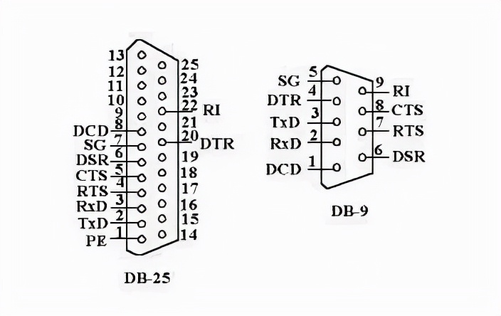 RS-232C标准接口有25条线,其中,4条数据线、11条控制线、3条定时线以及7条备用和未定义线。那么,这些信号线在9针串口和25针串口的管脚上是如何分配的呢?