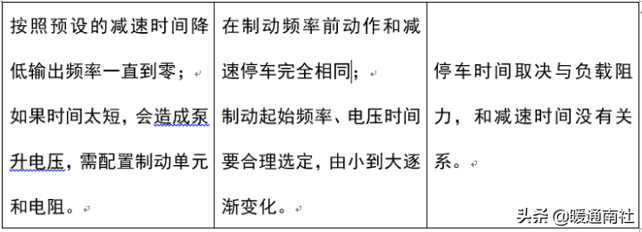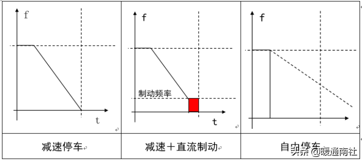功能定义:对旋转的电机实施启动时,需要平稳不跳闸启动; 功能特点:变频器先检测当前电机转速和方向后以该速度为起点平滑再启动; 适用:风机、水泵。 停车方式:
