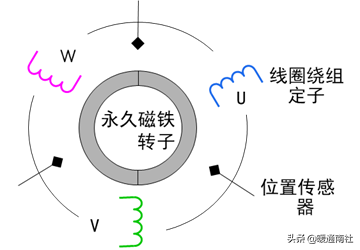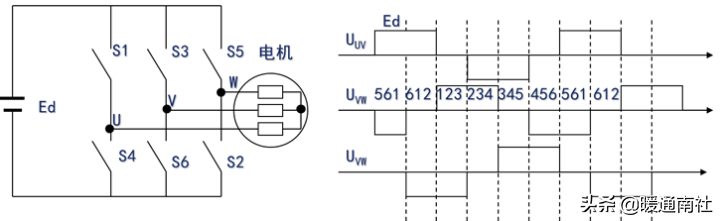 无刷直流电机在运行时,必须实时检测出转子的位置,从而进行相应的驱动控制,以驱动电机换相,保证电机平稳地运行。 实现无刷直流电机位置检测通常有两种方法,一是利用电机内部的位置传感器(通常为霍尔元件)提供的信号;二是检测出无刷直流电机相电压,利用相电压的采样信号进行运算后得出。 由于压缩机电机无法安装位置传感器,所以直流变频空调的压缩机都采用后一种方法进行电机换相。 直流变频所用电机学术上称为“自控式永磁同步电动机”属于交流电动机范畴。 自控式永磁同步电动机根据定子绕组的不同主要分为两大类,方波型永磁同步电动机与正弦波型永磁同步电动机; 方波型永磁同步电动机也称为无刷直流电动机(Brushless DC Motor—BLDCM ),绕组一般为分布式,反电动势为梯形波,驱动方式为120度方波; 正弦波型永磁同步电动机也称为永磁同步电动机(Permanent Magnet Synchronous Motor—PMSM),绕组一般为集中式,反电动势为正弦波,驱动方式为180度正弦波; 方波型与正弦波型永磁同步电动机对比: