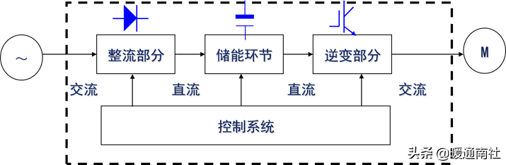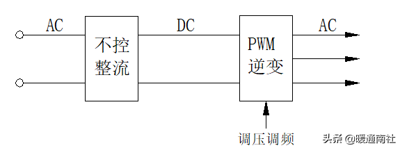 交直交电压型变频器因结构简单,功率因素高(接近1),目前广泛使用。 基本工作原理: