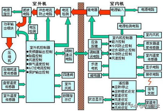 控制器不同:变频空调器的控制器远比定频空调器复杂。 输出能力不同: 在一个工况下定频机只有一个能力输出; 变频机的输出能力可以随工况的变化而调整。 变频空调器的原理: