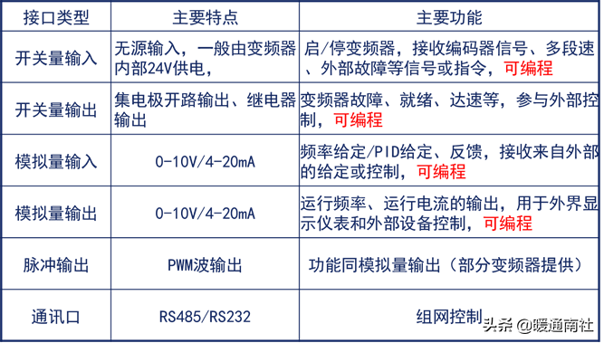 通过一根二芯/四芯电缆,遵守公共的通讯协议,可任意读取控制网上设备的状态,可以实现启停、参数设置、报警、复位、方向设置等操作,节省了大量的连线。 变频器基本功能: