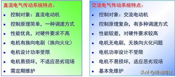 70年代以前直流占统治地位,交流调速只在大功率电机调速上使用;目前交流调速已经占统治地位。 交流电气传动系统的发展历程: