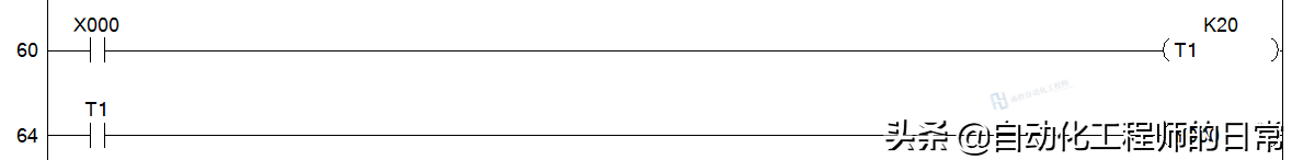 PLC编程过程中,定时器是非常常用的控制指令。常用于定时、延时、流程控制等。在几种类型的定时器中,接通延时定时器是非常常用的,绝大多数的控制场景都可以使用此定时器完成控制功能。这里就定时器的使用举例如下。 延时输出控制功能说明 检测到输入信号后,延时2s,然后输出。 PLC资源分配 X0:延时输入信号 T1:延时定时器 Y0:输出信号 程序实现  延时输出控制程序