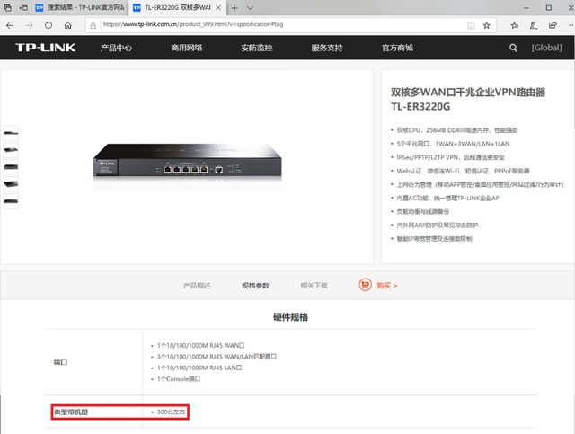 核心提示:全球领先的网络通讯设备供应商, 产品涵盖以太网、无线局域网、宽带接入、电力线通信,在既有的传输、交换、路由等主要核心领域外,正逐步进入移动互联网终端、数字家庭、网络安全等领域。TP-LINK始终致力于为大众提供最便利的本地局域网络互联和In 如何查询企业路由器的带机量,下面给大家推荐三种方式: 官网查询 登录TP-LINK官方网站,在右上角搜索框中输入要查询的企业路由器的产品型号,下图以ER3220G为例: