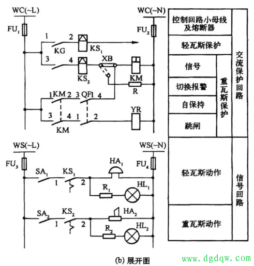 但倘若变压器内部发生了严重故障,重瓦斯的情况就会接踵而至。此时,瓦斯继电器KG的下触头KG(3 - 4)果断闭合,一场与故障的“战斗”就此打响。它经过信号继电器KS2、连接片XB,启动出口继电器KM。KM的动合触头KM(3 - 4)闭合,犹如扣动了[color=rgb(68, 68, 68) !important]断路器QF1跳闸的“扳机”,接通断路器QF1的跳闸线圈YR,使断路器QF1迅速跳闸,将故障部分及时隔离,避免故障的进一步扩大。与此同时,KS2的动合触头KS2(1 - 2)闭合,再次发出重瓦斯报警信号,让工作人员明确知晓故障的严重程度。