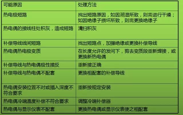 1.热电偶. 热电偶有正负极,补偿导线也有正负之分.首先保证连接,配置确.在运行中,常见的有短路,断路,接触不良(有万用表可判断)和变质(根据表面颜色来鉴别).检查时,要使热电偶与二次表分开。