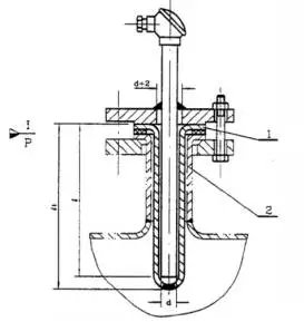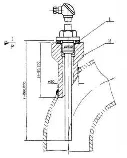 2.热电偶、热电阻温度计安装方式 a.直形连接头:直插。 b.45°角连接头:斜插。 c.法兰:直插。