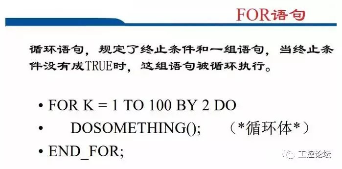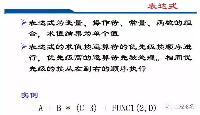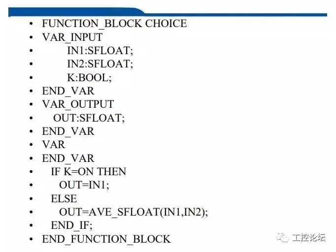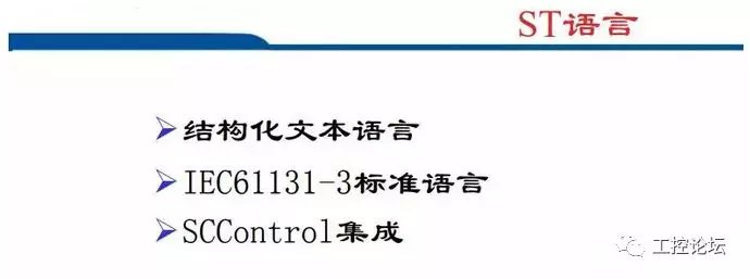 结构化文本语言表面上与 PASCAL语言很相似,但它是一个专门为工业控制应用开发的编程语言,具有很强的编程能力用于对变量赋值、回调功能和功能块、创建表达式、编写条件语句和迭代程序等。