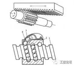 优点:结构简单。 缺点:回差较大。  2、滚珠丝杠 在丝杠和螺母的螺旋槽内嵌入滚珠,并通过螺母中的导向槽使滚珠能连续循环。 优点:摩擦力小,传动效率高,无爬行,精度高。 缺点:制造成本高,结构复杂。