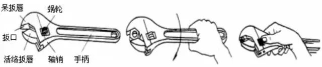 活动扳手又称活络扳头,是用来紧固和起松螺母的一种专用工具。 活动扳手由头部和柄部组成,头部由活动扳唇、扳口、呆扳唇、蜗轮和轴销等构成,如图所示。旋动蜗轮可调节扳口大小。 使用注意事项: 活络板手不可反用,以免损坏活络板唇。 不可用加力杆接长手柄以加大扳拧力矩。 不得当作撬棒和手锤使用。