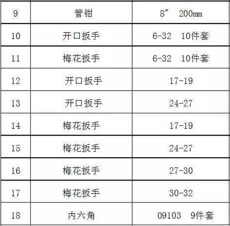 仪表车间工具明细表