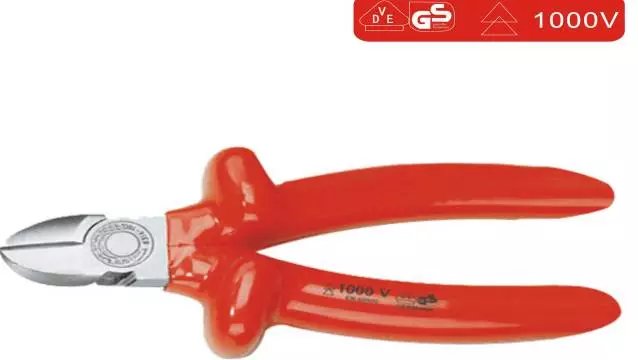 斜口钳也是检修常用的钳子之一,其头部扁斜,又名扁嘴钳,主要用于剪切导线,元器件多余的引线,还常用来代替剪刀剪切绝缘套管、尼龙扎线卡等。其柄部有铁柄和绝缘管套。常用的斜口钳,其绝缘柄耐压应为1000V以上。