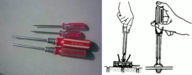 螺丝刀又称起子、改锥等。头部形状为一字形和十字形的是两种常用的螺丝刀。一字形螺丝刀用来紧固或拆卸带一字槽的螺钉,十字形螺丝刀是专供紧固或拆卸带十字槽的螺钉。