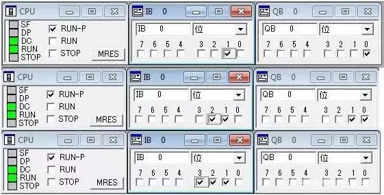9)然后测试,先后将I0.1,I0.2,I0.3,I0.4激活,可以看到输出也发生了变化。