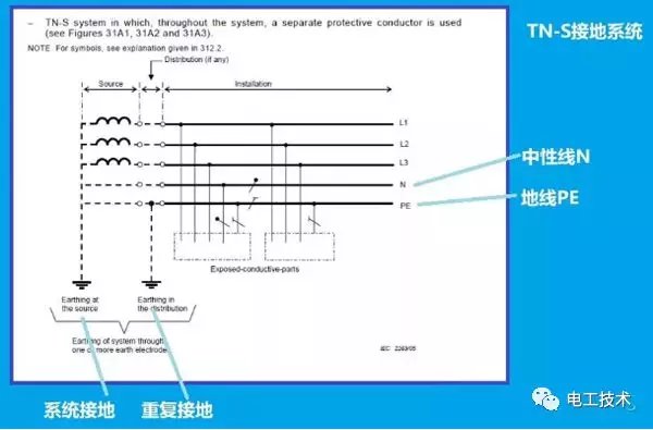 IEC提出了另外一种接地形式,以满足配电系统的接地需求,这就是TN-S接地系统。