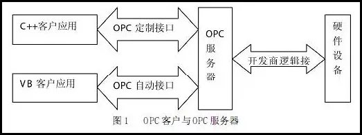 图1所示为OPC接口、 OPC服务器及OPC客户应用的联系。 像所有的COM实现一样,OPC的结构是客户机服务器模式。各个OPC客户程序通过OPC标准接口对各OPC服务器管理的设备进行操作,而不需关心服务器的实现细节及设备内部的具体细节。OPC把开发访问接口的任务放在硬件生产厂家或第三方厂家,以OPC服务器的形式提供给用户,解决了软、硬件厂商的矛盾,完成了系统的集成,提高了系统的开放性和可互操作性。