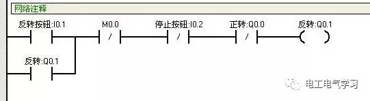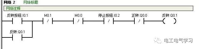 题意2要求按停止按钮5秒后才能改变电机方向,所以这里需设置一个标志位,这里用M0.0。 并且加上程序互锁电路,具体如下: