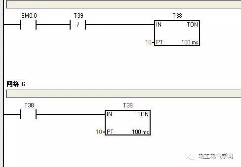 这次增加了网络4/5/6,网络5和6就是利用2个计时器产生一个一秒脉冲的小程序,SM0.0为特殊位,其功能为一直得电。网络4就是利用M0.1将网络1/2/3锁死,也就是说M0.1得电网络1.2.3是不起作用的。其原理与上一小结的M0.0一样。 以上就是这个实例的全部编程。正所谓万丈高楼平地起,如果你叫小编一口气编出来,小编也是很为难的。但是,将题意一点点拆分,一点点的把所需的功能写入,最后一定可以合你心意。最后你看看编完的程序与最初的程序差了多少?