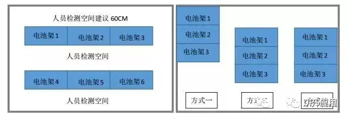 UPS的蓄电池做为UPS电源系统的后备能量也是UPS电源系统重要组成部分,尤其是大中型的UPS电源后备蓄电池数量多、容量大、质量重,如果安装时的布局不合理会造成建筑体的损坏、人员伤亡、后期维护困难及无法检测等的问题。 在此与大家共同分享UPS蓄电池安装布局的方式和方法: 1建筑体承重的问题 1 承重不单考虑蓄电池的重量,还有UPS电源、消防钢瓶、机架等的重量,必须遵从国家的设计规范。如果由于承重不够导致UPS电源及蓄电池压坏建筑体从10楼坠穿到底楼会有什么样的后果大家可想而知。具体承重要求可参照《数据中心设计规范》GB50174-2017进行设计: ![]() 2 对于大型UPS(尤其是工频机)的UPS室和电池室最好设计在建筑物的底层。 2电池架在电池室内布局的问题 在电池架周围预留维护人员检测蓄电池的空间,根据《通信电源设备安装工程设计规范》GB51194-2016要求,立放的电池组周围的走道或维护空间不小于80CM,卧放的电池组周围的走道或维护空间不小于100CM。 ![]() 不建议方式 建议安装方式 3蓄电池在电池架内的布局问题 1 蓄电池要垂直于电池架的侧面活撑(可拆卸)安装,电极(接线端子)在同一侧的蓄电池电极朝外安装(如果电池从上面看是距形的以方便接线和维护为原则); ![]() 2 侧面活撑要装在电池架的两侧,如有多个电池架,各电池架间同层的侧面活撑要向外安装形成一条直线以便拆卸活撑及灵活的从侧面拉出任何一节蓄电池。 ![]() 案例分析 ![]() 上图这个安装方式蓄电池是垂直于侧活撑但是侧活撑并没有向外安装形成一条线,而是无法拆卸的侧死撑朝外安装。这种安装方式有很大的弊端,如果要更换一节红色实线方框内的电池时就需要把该组上面一层的电池全部拆掉(包括上面电池压住的承重横撑也要拆除),费时、费力也不安全。 ![]() |