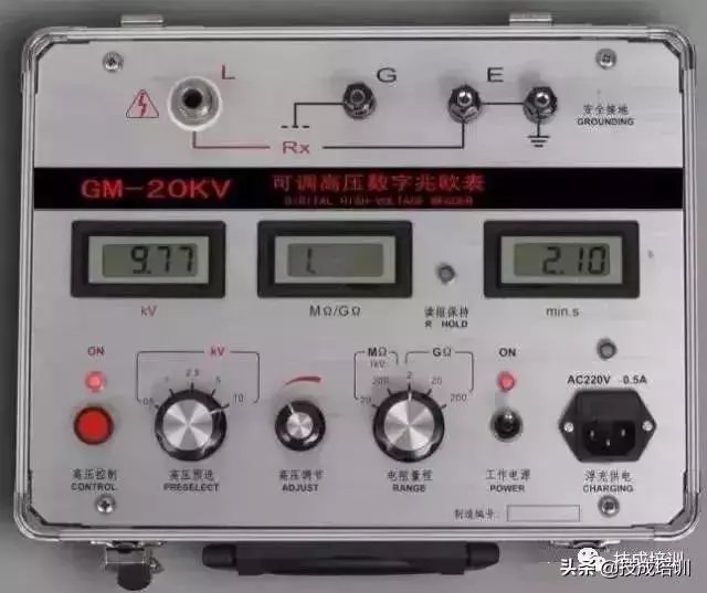 本文介绍几种电工常用的仪表使用方法及注意事项,主要有万用表、欧姆表、电压表、电流表、电阻测量仪等的简单介绍。 一、万用表的使用方法 万用表能测量直流电流、直流电压、交流电压和电阻等,有的还可以测量功率、电感和电容等,是电工最常用的仪表之一。 ![]() 1、万用表的基本结构及外形 万用表主要由指示部分、测量电路和转换装置三部分组成。指示部分通常为磁电式微安表,俗称表头;测量部分是把被测的电量转换为适合表头要求的微小直流电流,通常包括分流电路、分压电路和整流电路;不同种类电量的测量及量程的选择是通过转换装置来实现的。 ![]() 500型万用表 2、万用表的使用方法 (1)端钮(或插孔)选择要正确 红色表笔连接线要接到红色端钮上(或标有“+”号插孔内),黑色表笔的连接线应接到黑色端钮上(或接到标有“—”号插孔内),有的万用表备有交直流2500伏的测量端钮,使用时黑色测试棒仍接黑色端钮(或“—”的插孔内),而红色测试棒接到2500伏的端钮上(或插孔内)。 ![]() (2)转换开关位置的选择要正确 根据测量对象将转换开关转到需要的位置上。如测量电流应将转换开关转到相应的电流档,测量电压转到相应的电压档。有的万用表面板上有两个转换开关,一个选择测量种类,另一个选择测量量程。使用时应先选择测量种类,然后选择测量量程。 (3)量程选择要合适 根据被测量的大致范围,将转换开关转至该种类的适当量程上。测量电压或电流时,最好使指针在量程的二分之一到三分之二的范围内,读数较为准确。 (4)正确进行读数 在万用表的标度盘上有很多标度尺,它们分别适用于不同的被测对象。因此测量时,在对应的标度尺上读数的同时,也应注意标度尺读数和量程档的配合,以避免差错。 (5)欧姆档的正确使用 ①选择合适的倍率档: 测量电阻时,倍率档的选择应以使指针停留在刻度线较稀的部分为宜,指针越接近标度尺的中间,读数越准确,越向左,刻度线越挤,读数的准确度越差。 ②调零: 测量电阻之前,应将两根测试棒碰在一起,同时转动“调零旋钮”,使指针刚好指在欧姆标度尺的零位上,这一步骤称为欧姆档调零。每换一次欧姆档,测量电阻之前都要重复这一步骤,从而保证测量准确性。如果指针不能调到零位,说明电池电压不足需要更换。 ③不能带电测量电阻: 测量电阻时万用表是由干电池供电的,被测电阻决不能带电,以免损坏表头。在使用欧姆档间隙中,不要让两根测试棒短接,以免浪费电池。 (6)注意操作安全 ①在使用万用表时要注意,手不可触及测试棒的金属部分,以保证安全和测量的准确度。 ②在测量较高电压或较大电流时,不能带电转动转换开关,否则有可能使开关烧坏。 ③万用表用完后最好将转换开关转到交流电压最高量程档,此档对万用表最安全,以防下次测量时疏忽而损坏万用表。 ④当测试棒接触被测线路前应再作一次全面的检查,看一看各部分位置是否有误。 二、兆欧表的使用方法 欧兆表俗称摇表,是用来测量大电阻和绝缘电阻的,它的计量单位是兆欧(MΩ),故称兆欧表。兆欧表的种类有很多,但其作用大致相同。 ![]() 手摇式兆欧表 ![]() 电子式兆欧表 1、兆欧表选用 规定兆欧表的电压等级应高于被测物的绝缘电压等级。所以测量额定电压在500V以下的设备或线路的绝缘电阻时,可选用500V或1000V兆欧表; 测量额定电压在500V以上的设备或线路的绝缘电阻时,应选用1000~2500V兆欧表;测量绝缘子时,应选用2500~5000V兆欧表。 一般情况下,测量低压电气设备绝缘电阻时可选用0~200MΩ量程的兆欧表。 2、绝缘电阻的测量方法 兆欧表有三个接线柱,上端两个较大的接线柱上分别标有“接地”(E)和“线路”(L),在下方较小的一个接线柱上标有“保护环”(或“屏蔽”)(G)。 ![]() (1)线路对地的绝缘电阻 将兆欧表的“接地”接线柱(即E接线柱)可靠地接地(一般接到某一接地体上),将“线路”接线柱(即L接线柱)接到被测线路上,如下图所示。 连接好后,顺时针摇动兆欧表,转速逐渐加快,保持在约120转/分后匀速摇动,当转速稳定,表的指针也稳定后,指针所指示的数值即为被测物的绝缘电阻值。 实际使用中,E、L两个接线柱也可以任意连接,即E可以与接被测物相连接,L可以与接地体连接(即接地),但G接线柱决不能接错。 ![]() (a)测量线路的绝缘电阻 (b)测量电动机绝缘电阻 (c)测量电缆绝缘电阻 (2)测量电动机的绝缘电阻 将兆欧表E接线柱接机壳(即接地),L接线柱接到电动机某一相的绕组上,如上图所示,测出的绝缘电阻值就是某一相的对地绝缘电阻值。 (3)测量电缆的绝缘电阻 测量电缆的导电线芯与电缆外壳的绝缘电阻时,将接线柱E与电缆外壳相连接,接线柱L与线芯连接,同时将接线柱G与电缆壳、芯之间的绝缘层相连接,如上图c所示。 3、使用注意 (1)使用前应作开路和短路试验。使L、E两接线柱处在断开状态,摇动兆欧表,指针应指向“∞”;将L和E两个接线柱短接,慢慢地转动,指针应指向在“0”处。这两项都满足要求,说明兆欧表是好的。 (2)测量电气设备的绝缘电阻时,必须先切断电源,然后将设备进行放电,以保证人身安全和测量准确。 (3)兆欧表测量时应放在水平位置,并用力按住兆欧表,防止在摇动中晃动,摇动的转速为120转/分钟。 (4)引接线应采用多股软线,且要有良好的绝缘性能,两根引线切忌绞在一起,以免造成测量数据的不准
