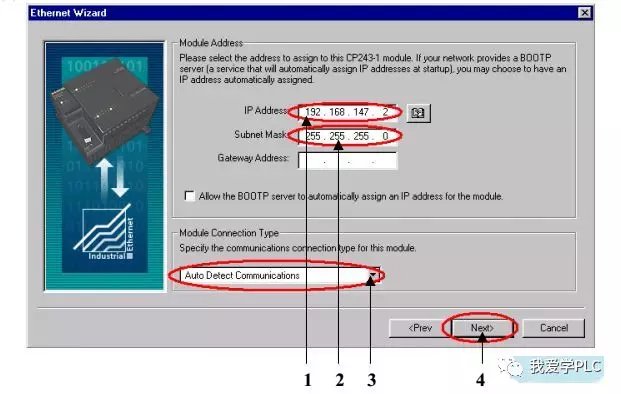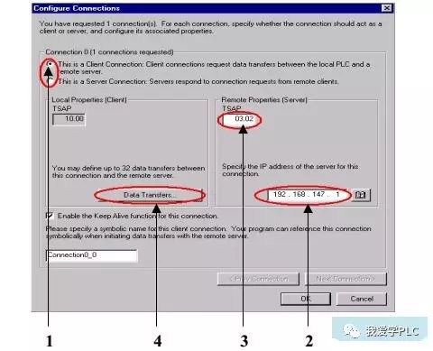 ![]() 步骤一:将CP243-1配置为CLIENT ![]() 实用STEP 7 Micro/WIN32中的向导程序。命令菜单中选择Tools至Ethernet Wizard。 ![]() 1、点击Next按钮,系统会提示您在使用向导程序之前,要对程序进行编译。 2、点击Yes编译程序 ![]() 1、在此处选择模块的位置 2、在线的情况下,你也可以用Read Modules 按钮搜寻在线的CP243-1模块 3、点击Next按钮 ![]() 1、在此处填写IP地址 2、在此处填写子网掩码 3、选择模块的通讯类型 4、点击Next按钮 ![]() 1、在此处填写模块占用的输出地址,建议实用缺省值 2、配置模块的连接个数 3、点击Next按钮 ![]() 1、配置模块为CLIENT 2、在此处填写SERVER端的IP地址 3、在此处填写TSAP地址,请实用03.02 4、点击Data Transfers按钮 ![]() 点击New Transfer按钮并点击Yes确认之后,你可以进入参数配置画面 ![]() 1、选择是读取数据还是写入数据 2、填写通讯数据的字节个数 3、填写发送数据区和接收数据区的起始地址 4、点击OK按钮 ![]() 点击OK进入下一个画面 ![]() 1、选择CRC校验 2、使用缺省的时间间隔30秒 3、点击Next按钮 ![]() 1、填写模块所占用的V存储区的起始地址 2、你也可以通过Suggest Address按钮来获得系统建议的C存储区的起始地址 3、点击Next按钮 ![]() 点击Finish按钮,完成对该模块的配置 步骤二:在CLIENT上编写通讯程序 ![]() 你可以使用向导程序为你提供子程序,在CLIENT上编写图中的通讯程序。然后,将整个项目下载到作CLIENT的CPU上。 步骤三:用STEP7软件配置CP343-1或CP43-1。 ![]() 使用HUB或者以太网直连电缆将CP243-1和CP2343-1或CP443-1连接在一起,你就可以在俩个CPU之间交换数据了。 ![]() |