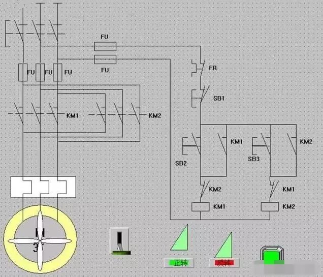 一、用组态王虚拟实现三相电动机的正反转控制 1 画一个风扇以表示电动机的正反转运行。同时画这个电动机 正反转的控制面板。控制面板上设有总的断路器、停止、正转、反转按钮。 2 画出电动机的正反转控制电气原理图,并且以组态王的动画形式表现。 下图是三相电动机的电路图: ![]() 变量表和变量表的设置方法: ![]() ![]() 下图是画面中开关的设置,与变量连起来: ![]() ![]() 这是填充的动画效果的设置: ![]() 如图为开关效果的动画连接设置: ![]() 图为程序的命令语言: ![]() 二、用组态王虚拟实现三相电动机的正反转控制与PLC连接 如图画面是组态王中的主电路和控制电路 ![]() 如图是通过设备端口的设置与外部设备相连: ![]() 开关的动画效果设置和之前的实验一样: ![]() 数据词典的设置: ![]() 其中开关与PLC相连的变量设置比较特别: ![]() 命令语言的设置如图: ![]() 在PLC程序中梯形图的画法: ![]() 通过这些设置,最后能实现设备与电脑互相连接,互相控制。在工厂中的异地控制和控制室中的设备都与之相类似。 ![]() |