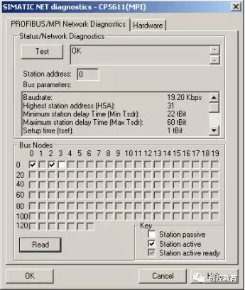 S7-200与S7-300的通讯(一) S7-200和S7-300进行MPI通信 S7-200 PLC与S7-300 PLC之间采用MPI通讯方式时,S7-200 PLC中不需要编写任何与通讯有关的程序,只需要将要交换的数据整理到一个连续的V 存储区当中即可,而S7-300 PLC中需要在组织块OB1(或是定时中断组织块OB35)当中调用系统功能X_GET(SFC67)和X_PUT(SFC68),以实现S7-200 PLC与S7-300 PLC之间的通讯。 调用SFC67和SFC68时VAR_ADDR参数填写S7-200的数据地址区,由于S7-200的数据区为v区,这里需填写 P#DB1.DBX×× BYTE n 对应的就是S7200 V存储区当中VB××到VB(××+n)的数据区。例如交换的数据存在S7-200中VB50到VB59这10个字节当中,VAR_ADDR参数应为 P#DB1.DBX50.0 BYTE 10. 首先根据S7-300的硬件配置,在STEP7当中组态S7-300站并且下载,注意S7-200和S7-300出厂默认的MPI地址都是2,所以必须修 改其中一个PLC的站地址,例子程序当中将S7-300 MPI地址设定为2,S7-200地址设定3,另外要分别将S7-300和S7-200的通讯速率设定一致,可设为9.6K,19.2K,187.5K三 种波特率,例子程序当中选用了19.2K的速率。 S7-200 PLC修改MPI地址可以参考下图: ![]() 图1 S7-200 设置MPI地址 S7-300 PLC修改MPI地址可以参考下图: ![]() 图2 S7-300 设置MPI地址 例子程序在OB1当中调用数据读写功能块:SFC67和SFC68,如下图: ![]() 图3 程序编写 分别在STEP7 MicroWin32 和STEP7当中监视S7-200和S7-300 PLC当中的数据,数据监视界面如下: ![]() 图4 S7-200监控结果 ![]() 图5 S7-300监控结果 通过CP5611,STEP7 MicroWin32, Set PG/PC Interface可以读取S7200和S7300的站地址,如下图: ![]() 图6 CP5611诊断结果(站地址0为进行编程的计算机) ![]() 图7 使用STEP7 MicroWin32诊断结果 ![]() |