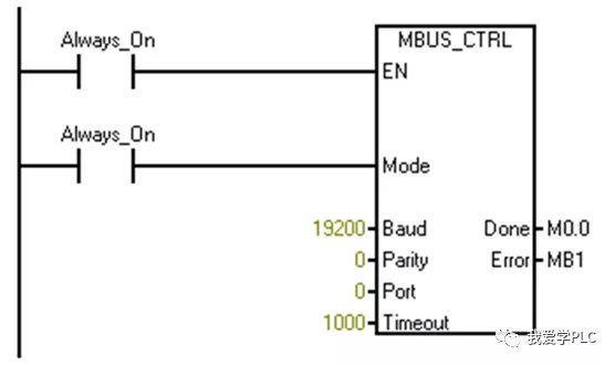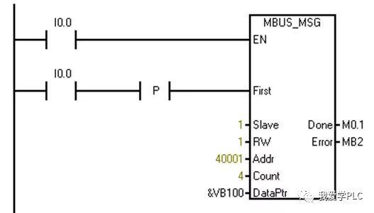 在上一篇文章中我们说到了MODBUS RTU 协议的信息帧的格式,同时也跟到大家提到了如何通过从站设备提供的通信说明中的信息帧格式及地址去准备相应的数据,那么今天我们主要说一下S7-200系列PLC中MODBUS RTU库指令意思。 在S7-200SMART系列PLC中的库指令中集成了MODBUS RTU通信的库指令,库指令中包含了S7-200SMART系列PLC作为主站功能的库指令及S7-200SMART系列PLC作为从站功能的库指令(如下图所示) ![]() 在这里我们主要介绍下主站的库指令,主站的库指令中根据所使用的通信口的个数不一样分为两个,若使用时PLC的本体的RS485端口需要作为modbus的主站功能,而扩展的RS485的信号板又需要作为MODBUS的主站的功能,那么前者使用第一个主站库的指令,后者可以使用第二个主站库指令,每个主站库指令中都有两个指令,分别为初始化指令MBUS_CTRL ,数据读写发送请求指令MBUS_MSG指令。下面我们对这两个指令的意思以及指令上的管脚进行一些说明: MBUS_CTRL指令 ![]() EN:初始化指令使能端,需要保持每个扫描周期都接通 Mode:通信协议的选择,若需选择MODBUS RTU通信,这需要保持该位为1状态,所以此处可以使用SM0.0接通。 Baud:通信波特率的设置 Parity:奇偶校验的选择,0表示无校验,1表示奇校验,2表示偶校验 Port :端口号设置,若使用PLC本体上的RS485端口,则应选择为0(注意S7-200PLC中的库指令中的MBUS_CTRL没有此管脚) Timeout: 该参数用于确定 Modbus 从站设备是否对主站发出请求做出响应。若达到设定值后,还未获得从站的响应,则PLC认为从站出问题,同时MBUS-MSG指令中的故障代码存储器中会存储相应的故障代码,同时完成位的状态为1. Done:完成位,当初始化完成后,该位的状态为1,编写程序时,可以根据这个完成位来判断初始化是否完成,完成后可以用于激活MBUS_MSG指令进行数据请求的发送,(需要注意是:初始化完成后,至少需要过一个扫描周期后,才能去激活MBUS-MSG指令,否则可能通信不成功) Error:故障代码存储器(使用一个字节进行存储),当初始化出现错误后,在故障存储器中会产生一个代码,查看指令帮助中的代码说明,可以查看到可能出错的原因是什么。 MBUS_MSG指令 ![]() EN:指令的使能 MBUS_MSG指令使用时一定要注意的一点就是,同一个扫描周期内,只能由一条MBUS_MSG的EN端的状态为1.如果在一个扫描周期内出现2条及2条以上的MBUS_MSG的EN端的状态为1的情况。则MBUS_MSG指令中的故障代码的值会为6,通信会不成功。 First:触发请求,仅保持一个扫描周期的时长 ,因此在使用时需要使用沿脉冲进行触发。 Slave:从站站号,根据从站中设置的地址进行填写 RW:读写操作选择,0表示读,1表示写,若控制变频器运行,使用写的功能,若需要读取变频器的电流等需要用读的命令。 Addr:起始的MODBUS寄存器地址,此地址使用时一定要正确编写。 MODBUS寄存器的地址,根据功能码的不一样,主要有4种类型的表示方式,分别为0XXXX(读写线圈状态),1XXXX(读开关输入状态),3XXXX(读输入寄存器),4XXXX(读写保持寄存器)四种类型,对于第四种类型4XXXX的类型,地址可以扩展,扩展为4XXXXX六位数的类型格式。 各功能码对应的MODBUS地址寄存器类型如下图所示,而每种地址的起始地址都是从0001开始,而且都是以十进制数进行表示的。 ![]() 地址类型确认后,如何来确定输入的地址呢? 该地址的确定与在上篇文章中提到的MODBUS RTU信息帧格式中的Data内容有关,Data的内容包括两部分内容,一部分内容为数据区的地址,一部为数据区的内容,则此处的MODBUS寄存器的地址与数据区的地址有关。如图所示: ![]() 此处中的数据区的地址,指的是寄存器地址,从图中可以看到他的范围是从十六进制数的0000到十六进制数的FFFF,因此从这我们可以看到功能码为06,对应的寄存器地址是0000的时候,那么在我们MBUS_MSG指令中的Adder的地址应填写为40001(因为都是表示的第一个地址,需要一一对应上)。 根据这个计算方法,我们可以写出 在上一篇文章中提到的控制变频器运行的寄存器地址对应都MBUS_MSG指令中Adder的地址为: ![]() 功能码为06,所以类型为4XXXX的类型,地址为16# 3200,相对于16#0000来讲,偏移了12800.(此为十进制数)所以对应到MBUS_MSG指令中的地址为在1的基础上上偏移12800,即12801,而功能码06对应的类型为4,所以我们在使用时应在MBUS_MSG指令的Adder出填写412801这个地址。 Count:读写的格式,表示从adder这个管脚指的的地址开始的连续多少个地址进行数据的读写。 Dataptr:读写数据存放的地址,使用指针的方式表示,实际地址以十六位的方式表示,假设使用的地址是&VB100。前面的指令管脚定义的是对变频器运行命令的控制,则当把16#1001写入到VW100中,则电机正转运行,若把16#1003写入到VW100中,则表示的是反转运行。若是读取的功能,假设MBUS_MSG指令中adder为413077,count为2,Dataptr为&VB102, 则表示把413077这个地址中的数据读取出来存放于VW102,把413078的数据读取出来存放于VW104中。 Done:完成位。当执行完成后,该为位1,因此当出现需要使用多个MBUS_MSG指令是,可以使用每个指令的Done来实现轮询的功能。 Error:故障代码存储器,方便查询通信故障。 通过本篇文章,希望大家对MODBUS的库指令有进一步的了解,有不对这次往指正,下一篇文章,我们主要介绍一下程序的设计。谢谢 ![]() |