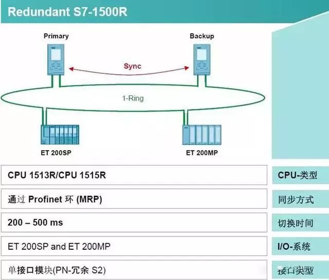 ![]() 西门子S7-1500系列 其替代400系列的任务眼看就要完成。但是西门子那么多400库存不能眼看着砸在自己手里,所以只能用限制功能的方式来逐步完成1500的换代工作,所以在以前的1500版本中,是不支持冗余组态的。 ![]() 西门子S7-400系列 情况在2018年下半年开始有所转机,西门子盘算了一下自己的400差不多库存销售完了,对自己可爱伶俐的小儿子开始更加溺宠了,连出了好几个型号来扩充其产品线,更是在新型号中破天荒的加入了冗余组态。 ![]() 西门子S7-1500冗余配置 这是多么值得庆祝,多么值得欢呼的消息。曾经多少个项目跟业主签约的冗余系统只能含泪用400系列来完成,多么希望用博途来完成设计组态的任务而不得,只能默默地晚上加班加点的改写Step 7的程序块。现在终于跟以前说拜拜,开始享受博途编程带来的便利。 本次新增的产品型号有:CPU1513R、 CPU1515R和CPU1517H这三种,其中CPU1513R、 CPU1515R适用于中小型项目,CPU1517H适用于大型项目,当然价格也是不菲。 在这三种型号中,CPU1513R 和 CPU1515R一般适用于中小型项目。冗余组态时其中一个CPU模块失效 ,备用CPU模块就会自动接管控制功能,可以做到快速切换,以防止数据丢失,防止控制失效。PROFINET总线的冗余组态通讯方式还可以提高设备的可用性。 西门子那些支持Profinet S2冗余控制功能的现场远程IO设备(例如ET 200SP/MP)通过PROFINET连接到冗余CPU结构中,构成PROFINET冗余通讯,即便是网络发生了中断的情况,现场设备也能继续工作而不会出现错误。 ![]() 这三种型号中的顶级CPU1517H性能更强,适用于大型项目的应用。该CPU有专用的光纤同步模块,可以实现冗余系统的快速、平滑切换。在以后,CPU1517H还将会支持PROFINET冗余网络。 ![]() ![]() |