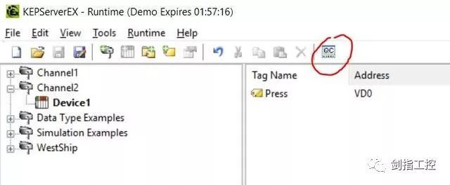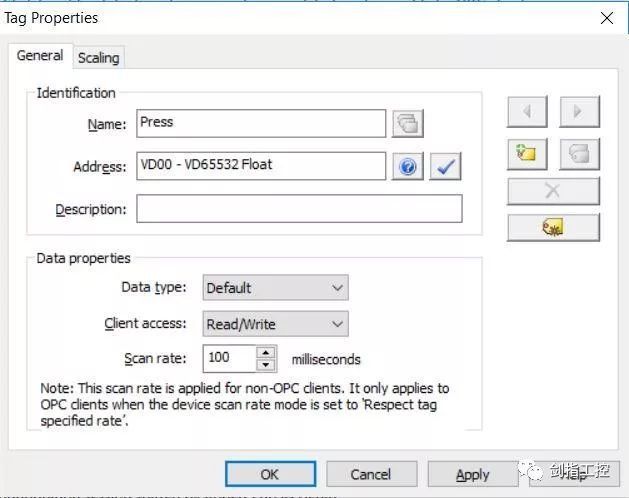 Kepware作为一款优秀的第三方 OPC 服务器,可以实现与多家 PLC ,DCS,RTU,等,实现与多种上位机软件,SCADA软件,他是包含 150 多种设备驱动、客户端驱动和高级插件的强大的软件平台。 今天主要介绍一下,Kepware如何实现与 PLC的通讯连接。我们使用的Kepware的软件版本是KEPServerEX V5,使用的硬件是性价比较高的西门子 PLC,SMART200系列,使用以太网实现他们之间的通讯连接,完成 PLC的数据采集。 ![]() 打开KEPServerEX,新建一个通道channel2,然后选择所需要的驱动,Siemens TCP/IP Ethernet ![]() 然后选择本机网卡,如果有多个网卡需要特别注意网卡IP地址: ![]() 一直点击下一步,直到完成。然后需要建立一台设备,新建设备decice1,然后下一步,选择设备型号 S7-200,可以看到这里很多西门子的TCP/IP驱动,如果是其他类型的PLC可以选择其他的。 ![]() 然后在下一步输入 SMART200 PLC的IP地址,需要和本机的网卡 IP地址在同一个网段, ![]() 然后一直点击下一步,设置可以选择默认,注意下图中的2个TSAP的值需要改为201. ![]() 然后下一步,参数可以默认设置,完成后就是添加变量点。必须需要添加一个FLOAT浮点类型的值 ![]() 如压力Press, 如果在PLC中此寄存器地址为VD0,那么在 Adress中输入 VD0,基本与西门子的地址保持一致。在 Data Type中选择 Float,读写类型用户可以自定义,以及设置扫描速率。 添加完所有点之后,点击 Quick Client可以查看这些寄存器是否读取正常 ![]() ![]() 如果通讯正常那么 Value这里会有数值显示,Quality这里将会显示通讯好坏,Bad代表通讯异常,Good代表通讯正常。 ![]() ![]() |