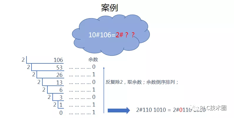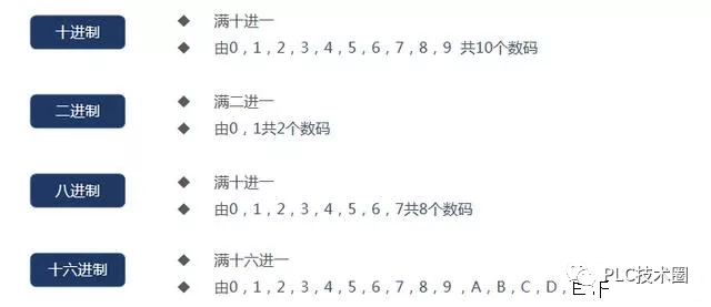 当然,人们输入计算机的十进制被转换成二进制进行计算,计算后的结果又由二进制转换成十进制,这都由操作系统自动完成,并不需要人们手工去做。人们通常采用的数制有十进制二进制、八进制和十六进制。 常用进制对应表 ![]() 常用进制使用场合 二进制只有 0 和 1 两个符号,按照逢二进一的规则运算。0和1用来表示开关量(或称数字量)的两种不同状态,如触点的断开和接通,线圈的得电和失电等。 ![]() 所有数据的运算、存储都是采用二进制进行 ![]() 西门子PLC上的输入输出编号是采用八进制方式命名 ![]() MODBUS-RTU通信数据发送与接收是采用了十六进制 ![]() 某变频器的参数地址以十六进制分配 ![]() 进制之间的相互转换 ![]() ![]() 方法:二进制数从低位到高位(即从右往左)计算,第0位的权值是2的0次方,第1位的权值是2的1次方,第2位的权值是2的2次方,依次递增下去,把最后的结果相加的值就是十进制的值了! ![]() ![]() 方法:将二进制数从最低位开始( 从右到左 ),以4位二进制数为一组进行分组,最左边不足4位的补零。然后对每组分别运用“8421”法则快速运算。 ![]() ![]() 方法:十进制数除2取余法,即十进制数除2,余数为权位上的数,得到的商值继续除2,依此步骤继续向下运算直到商为0为止。 ![]() ![]() 方法:对于每一位十六进制数,分别运用“8421”法则快速运算,逐位展开成4位二进制数,不足四位的补零,最后最左边的零可省略。 ![]() ![]() 方法:要从右到左用二进制的每个数去乘以16的相应次方,然后这些数字相加就是了。 ![]() ![]() |